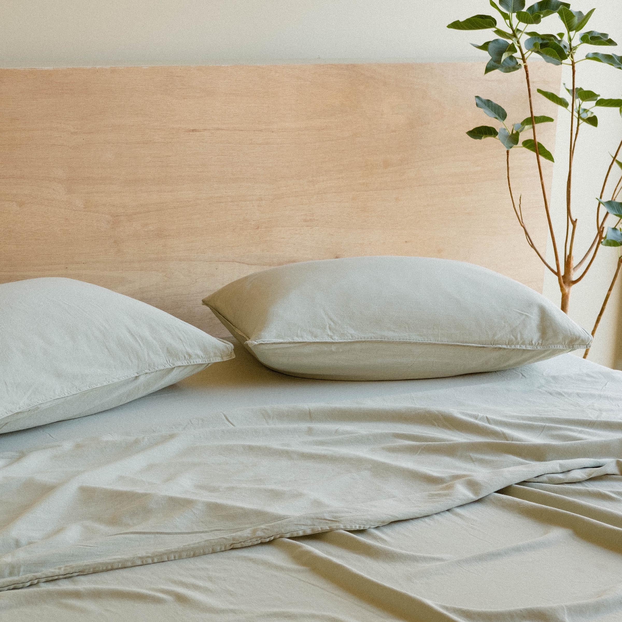 Designed for comfort, this lightweight organic cotton material is airy and breathable. Unlike the shiny sateens you’re probably familiar with, our modern take on sateen is matte and pre-washed for extra softness. The Organic Matte Sateen has a smoother texture than our Heirloom Linen, but with the same natural, grounding essence.